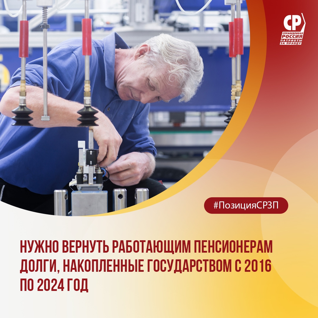 В этом году более 120 тысяч пенсионеров Тульской области, продолжающих работать, впервые за 8 лет получили справедливую индексацию пособий. Но, – только за 2024 год! Наша партия СПРАВЕДЛИВАЯ РОССИЯ – ЗА ПРАВДУ требует от Правительства страны вернуть работающим пенсионерам все долги, накопленные государством с 2016 по 2024 год. Соответствующий законопроект направил на отзыв в Правительство председатель Партии, руководитель фракции в Госдуме, Сергей Миронов.