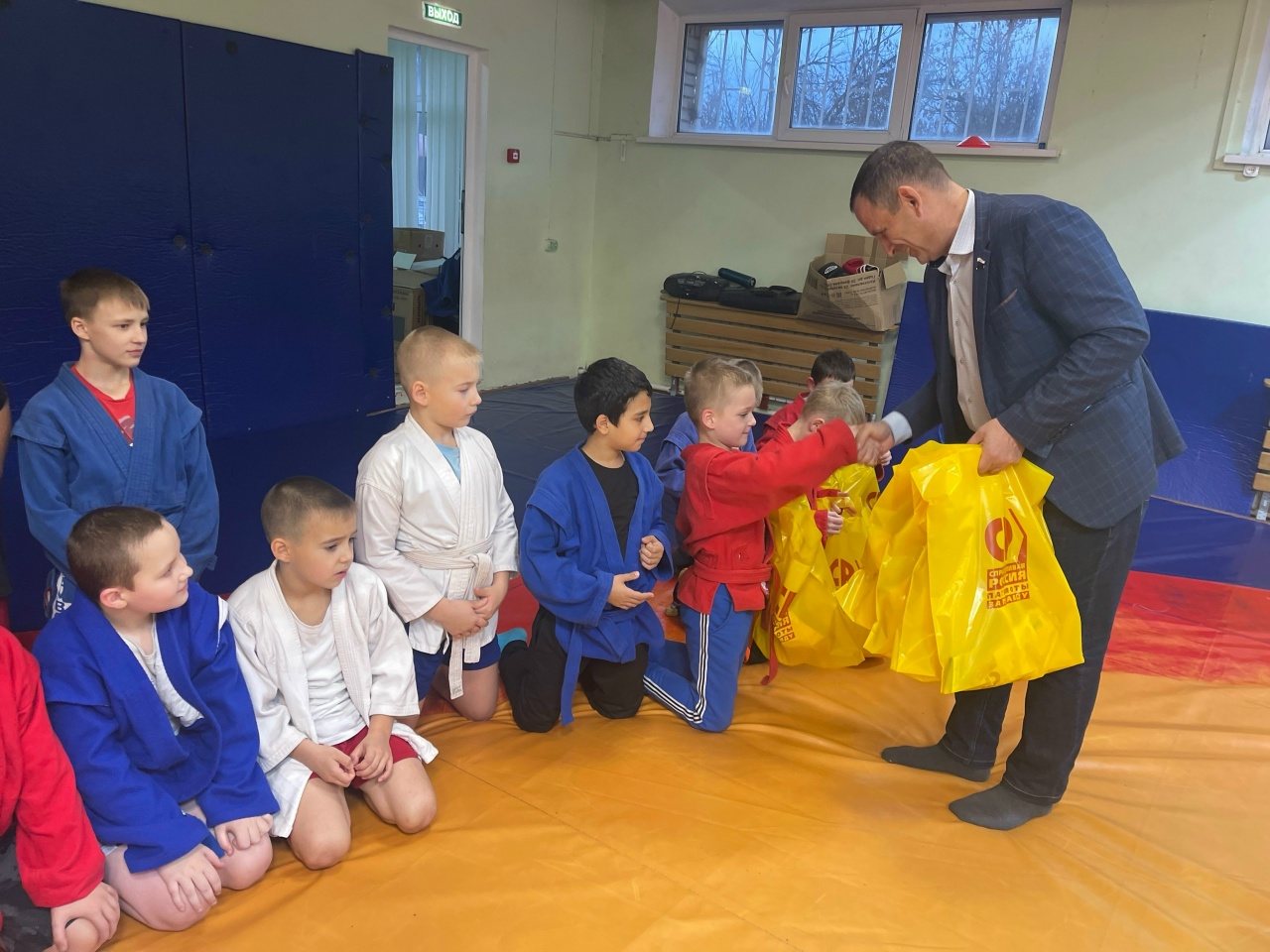 Сергей Гребенщиков и Дмитрий Шишкин в честь Всероссийского дня самбо вручили ребятам памятные подарки, которые стали приятным дополнением праздника спорта.