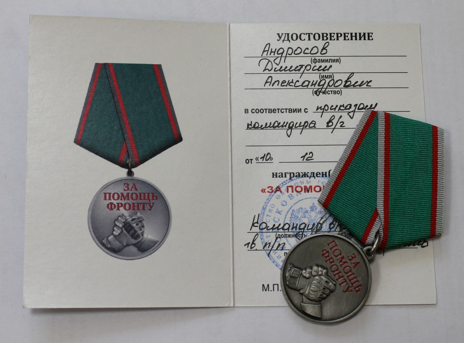 Медаль "За помощь фронту", которую вручили нашим однопартийцам представители воинской части – это не просто награда за работу, которая уже проделана и продолжается, но – символ того, что фронт и тыл едины! Символ нашей общей силы духа, общего стремления к победе!