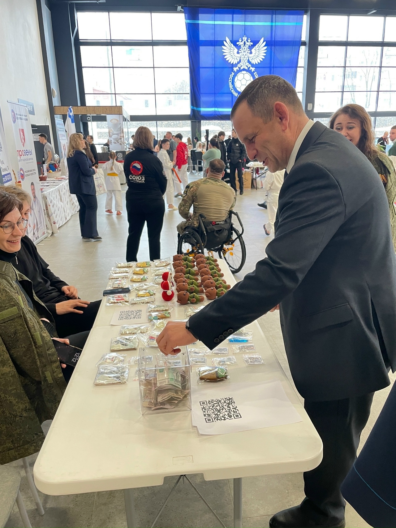 Лидер тульских однопартийцев приветствовал спортсменов и болельщиков. Перед началом состязаний Сергей Гребенщиков вместе с другими гостями посетил благотворительную ярмарку талисманов ручной работы, изготовленных представительницами объединения "Жены Героев".