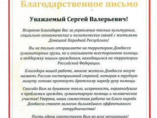 Лидера тульских справедливороссов поблагодарили за помощь народу Донбасса