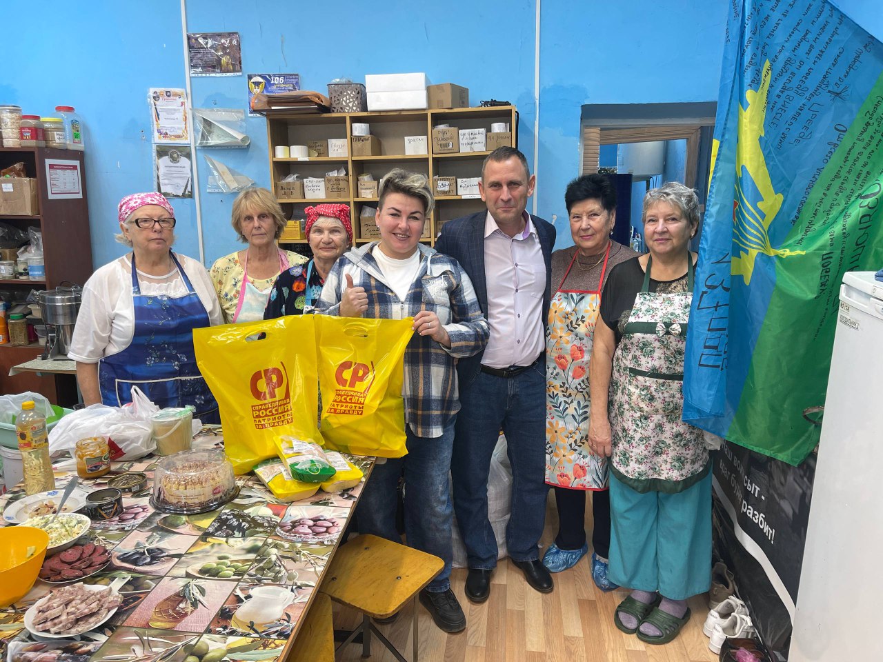 И в день рождения лидера волонтеров, наш однопартиец также приехал с особыми подарками – партией продуктов, из которых тулячки будут готовить блюда для отправки нашим бойцам в зону СВО.