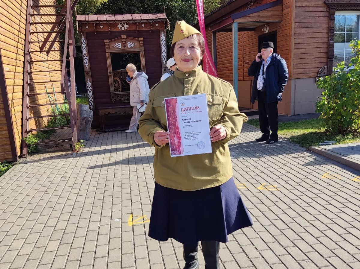 Наша соратница победила в номинации "чтецы", представив на суд жюри исполнение отрывка из поэмы Александра Твардовского "Василий Тёркин". Артистические способности Тамары Ивановы вместе с выдающейся выразительностью и демонстрацией активной гражданской позиции покорили организаторов фестиваля. Тамара Акимова впервые пробовала свои силы в творческом состязании, но волнение не помешало нашей коллеге стать лучшей среди 400 конкурсантов из 20 муниципальных образований тульского региона. В этом ей помогла режиссер районного Дома культуры п. Чернь Виктория Фомина, которая записала видео землячки, исполнившей стихотворение в военной форме.