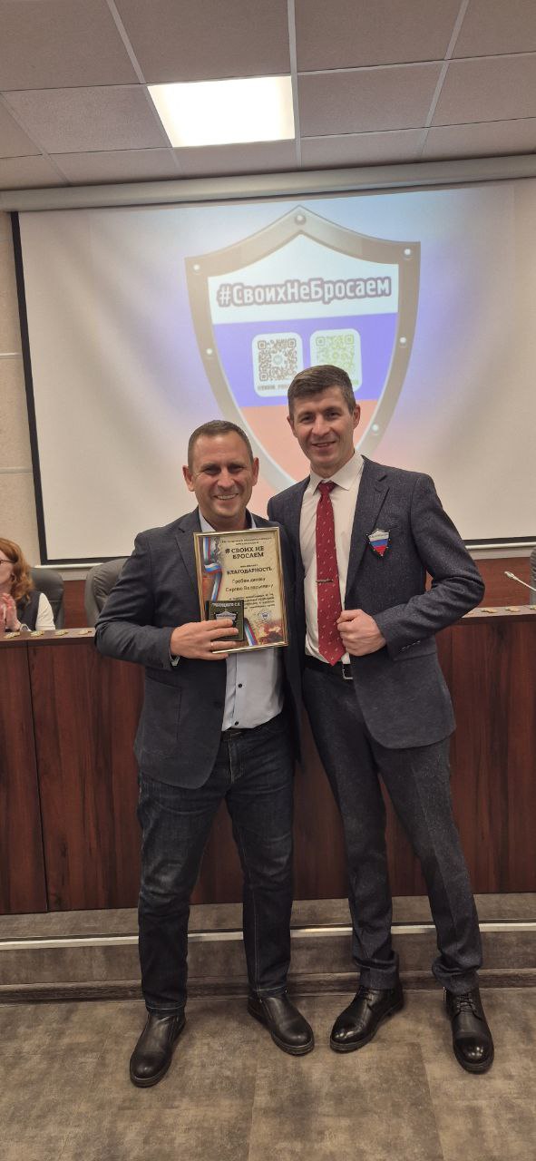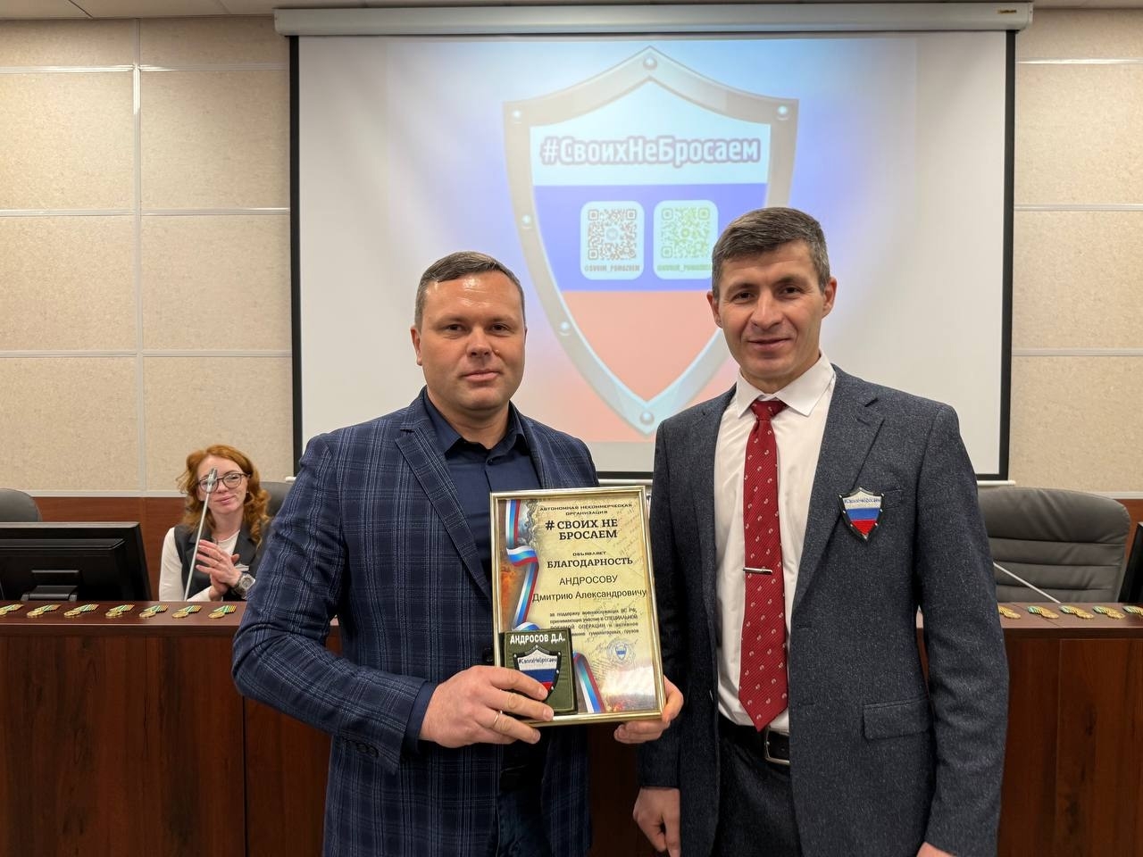Сергей Гребенщиков и Дмитрий Андросов награждены Благодарностями объединения "Своих не бросаем"