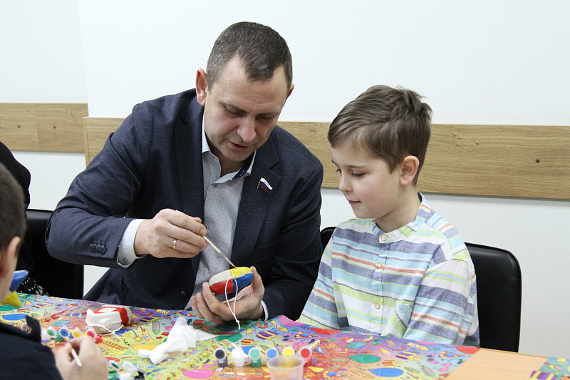 Депутаты с большим удовольствием расписывали шарики, домики из папье-маше, всевозможные фигурки и помогали малышам реализовывать творческие фантазии. А затем взрослые и дети вместе украсили изготовленными игрушками большую ёлку в актовом зале больнице.
