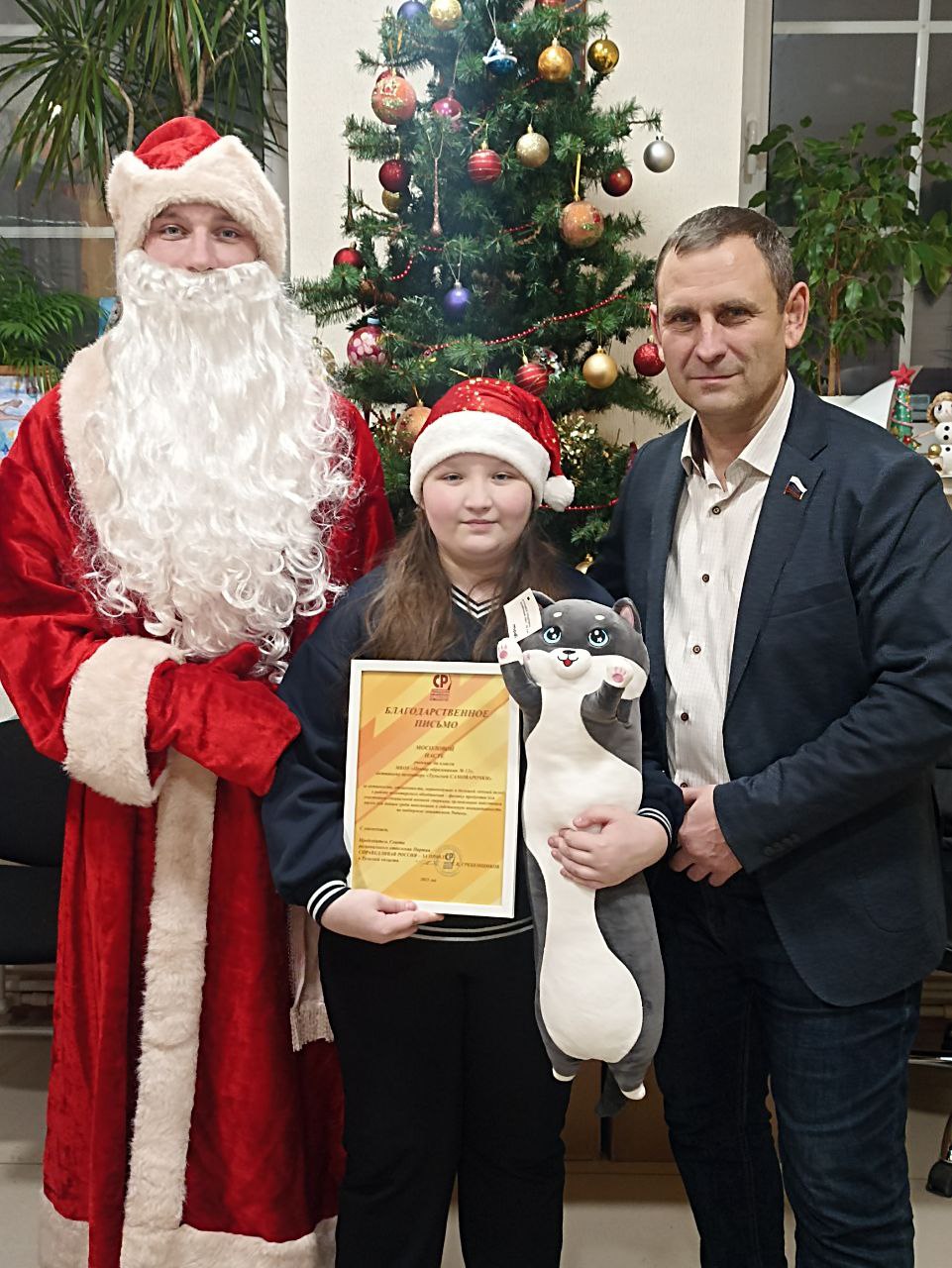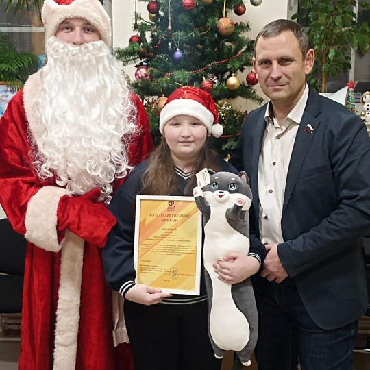 От имени всех соратников-однопартийцев Сергей Гребенщиков выразил юной землячке искреннюю признательность и восхищение её энергией и активностью, и вместе со сладким новогодним подарком и забавной мягкой игрушкой вручил именную Благодарность регионального отделения СПРАВЕДЛИВОЙ РОССИИ. Школьница же принесла в приёмную лидера тульских однопартийцев новые письма и рисунки вместе с гостинцами для военных, которые уже передали по назначению – бойцам.