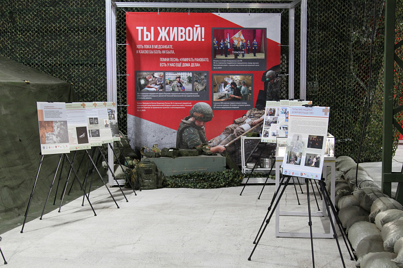 Выставка рассказывает и о рабочих буднях 39-го отдельного гвардейского медицинского отряда, который спасает наших бойцов, работая практически на передовой. Раздел "Тыл" представляет достижения оборонно-промышленного комплекса Тульской области и работу Центра "Герой 71", волонтерских организаций и жителей региона, поддерживающих бойцов.