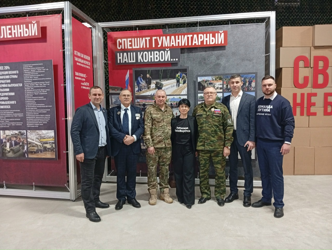 - Основная идея выставки – в сплоченности фронта и тыла, наших общих усилиях по приближению победного окончания СВО, – поделился Сергей Гребенщиков. – И для нас это мероприятие стало еще и встречей с хорошими друзьями – волонтерами объединений "Своих не бросаем", "Тульская самоварочка" и других, с которыми мы постоянно сотрудничаем и вместе выезжаем в зону проведения СВО к бойцам. Многие волонтерские организации как раз помогали наполнять выставку, представляли экспонаты, подлинные предметы из мест проведения боев. В этом особенность и уникальность экспозиции – все предметы на ней современные, из нашей сегодняшней жизни. Такие выставки представляют хорошую возможность для полноценного патриотического воспитания. Спасибо организаторам – за идею и достойное исполнение!